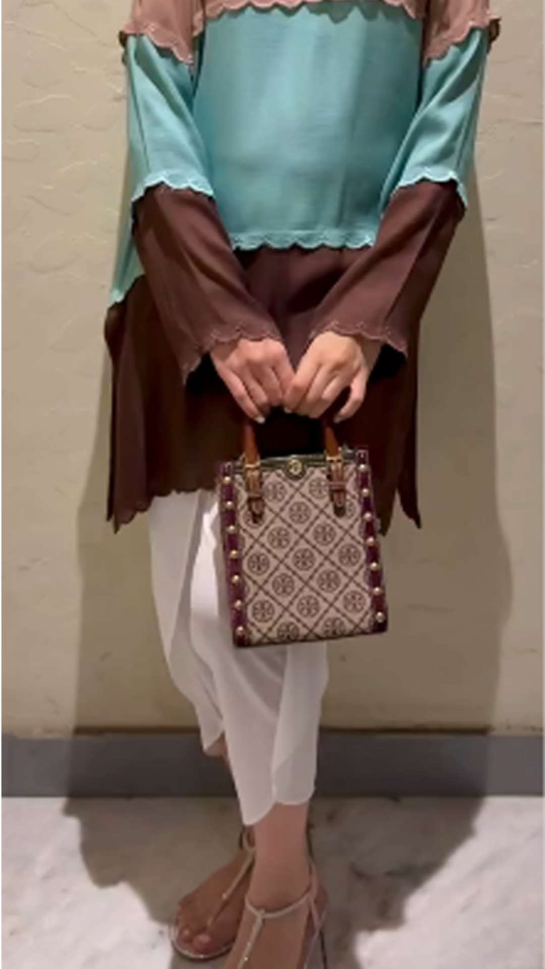 The appliquéd and embroidered colour blocked article is priced at Rs. 24,500/- (2pc)